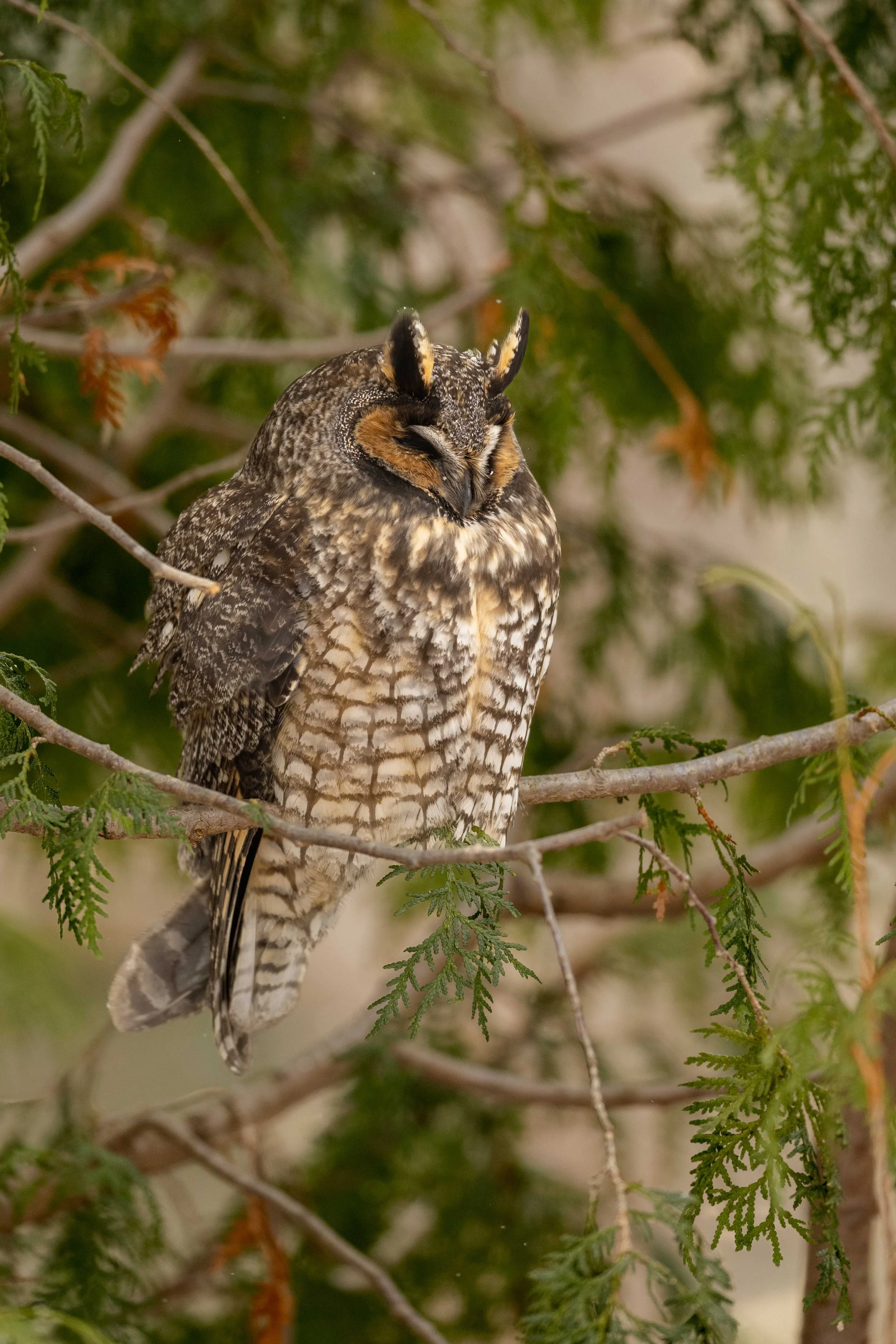 This owl season started out like previous ones with Barred Owls (Strix varia) and the rather predictable Long-eared Owls (Asio otus). Both are very cool and fun to see. Barred owls are interesting, as they are not fully nocturnal and will often hunt during the day. The barred owl is also one of my favourites and has a “true” owl hoot that is pretty amazing to hear.